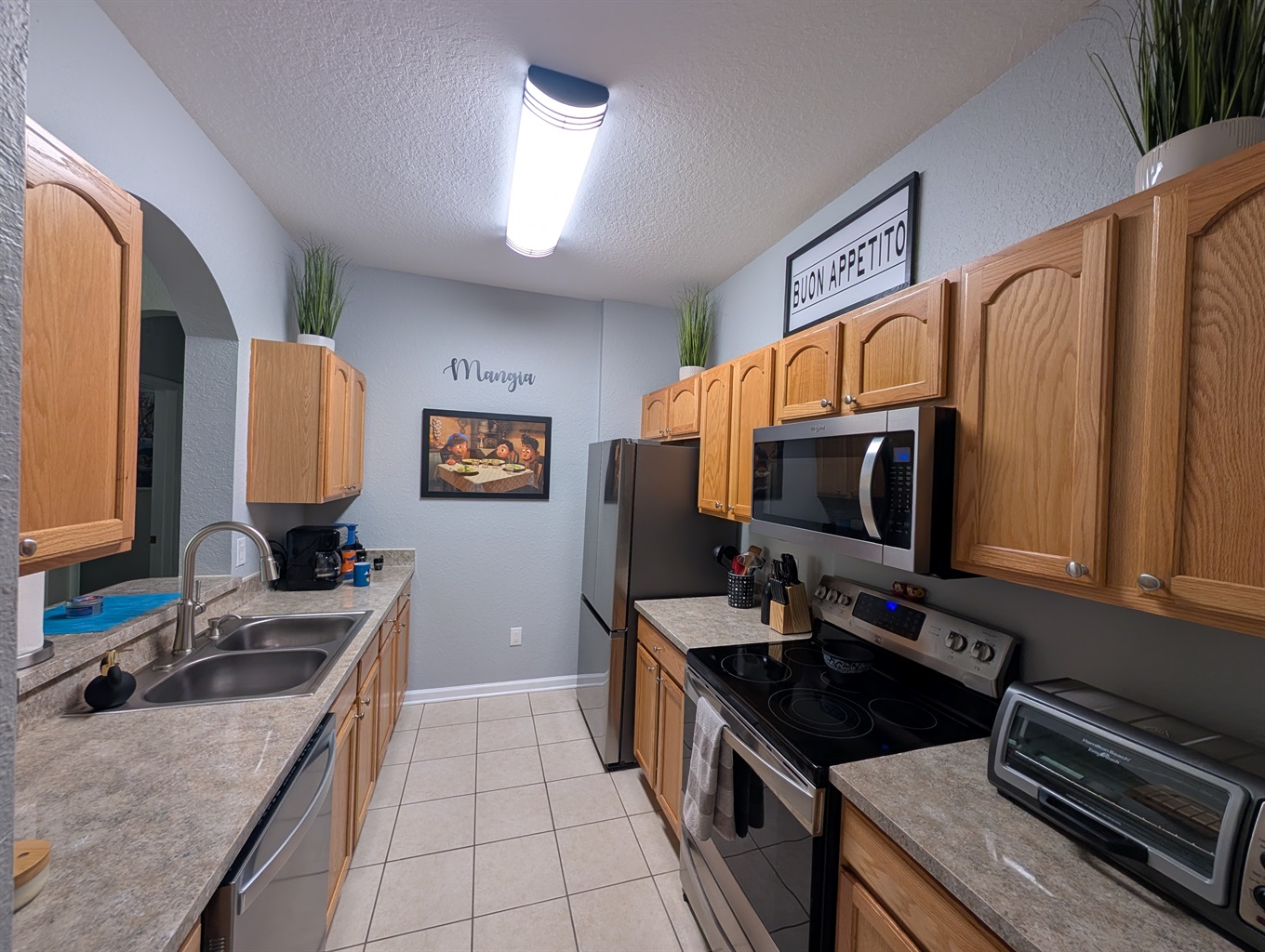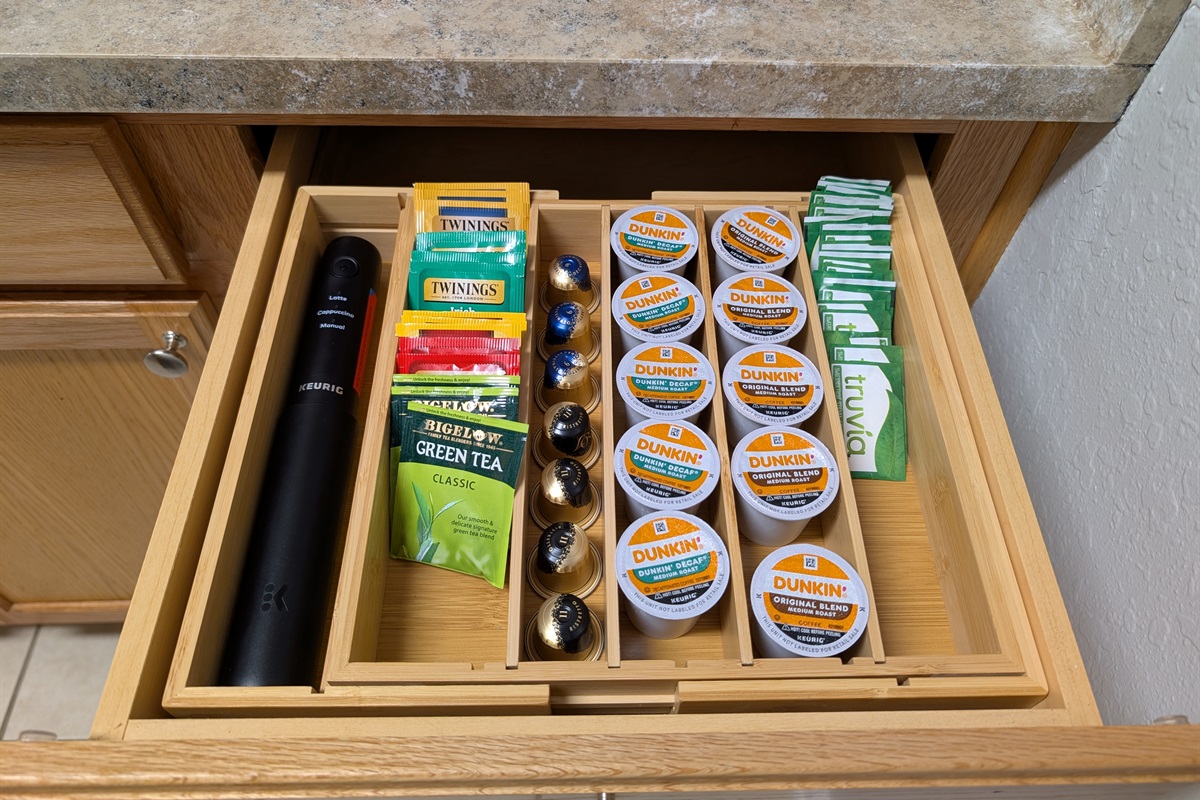 • Complete set of dishes, cookware, utensils, and appliances• Coffee maker, Keurig, and espresso machine