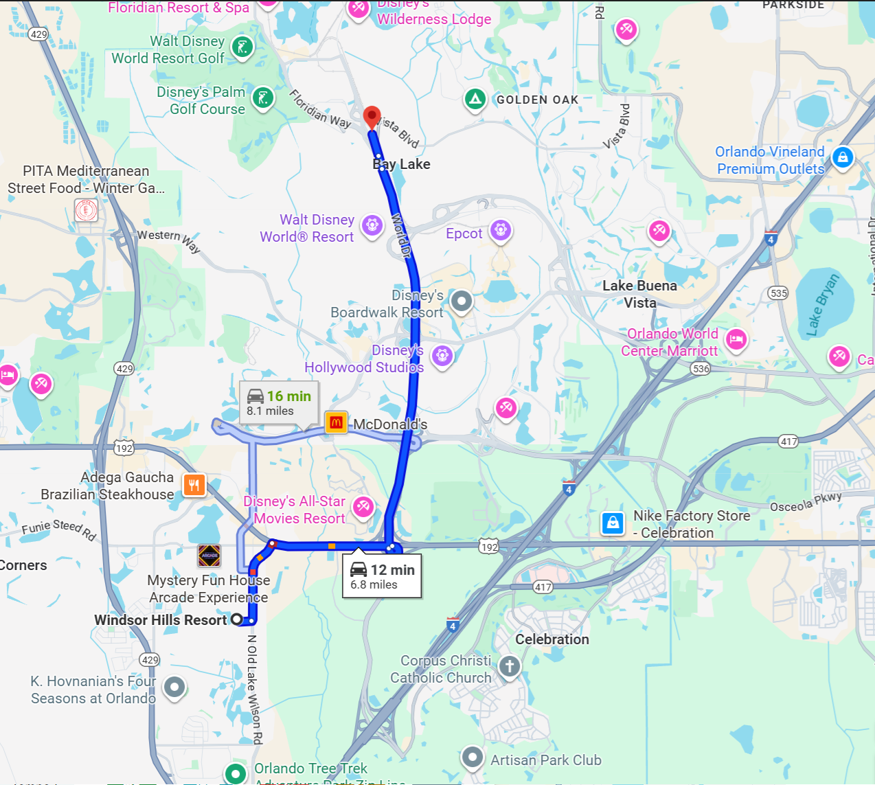 Normally a 10-15 minute drive from Windsor Hills to the parking lot of Magic Kingdom.